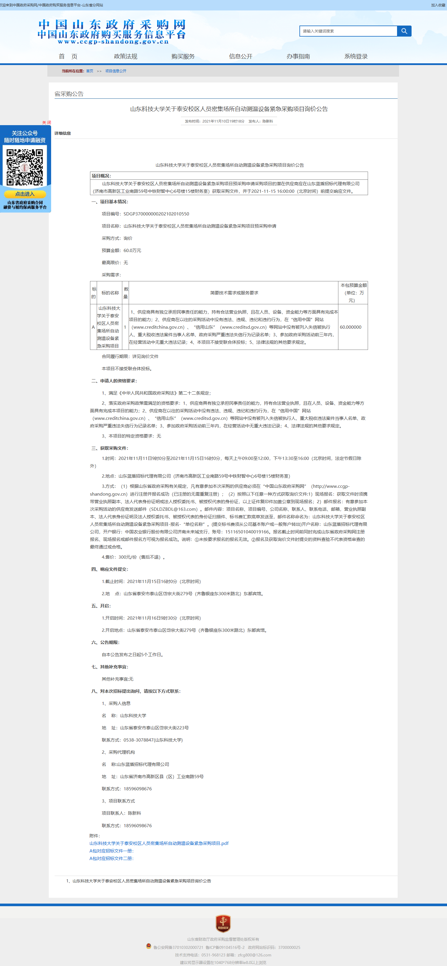 山東科技大學(xué)關(guān)于泰安校區(qū)人員密集場(chǎng)所自動(dòng)測(cè)溫設(shè)備緊急采購(gòu)項(xiàng)目 詢價(jià)公告