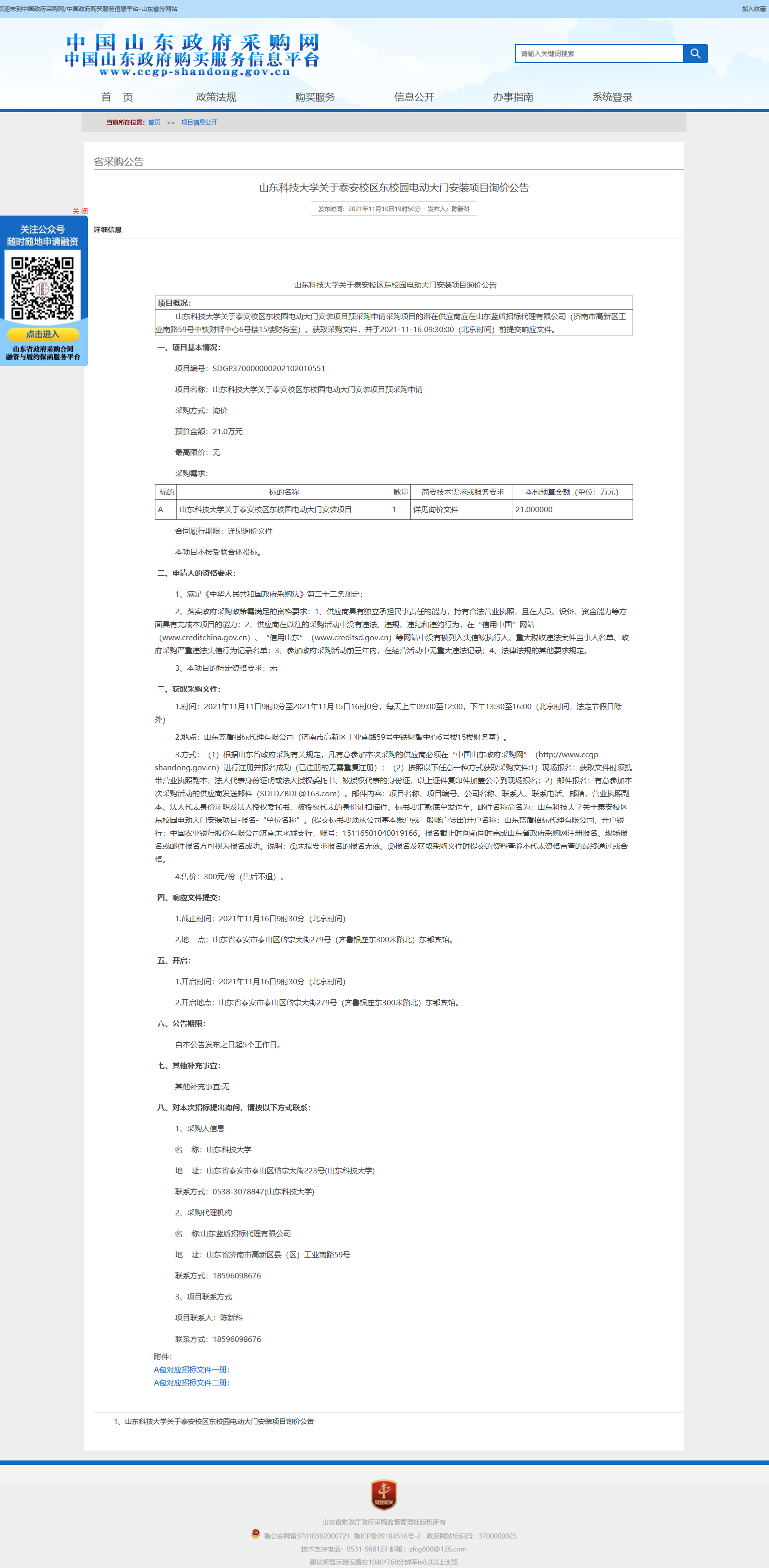 山東科技大學(xué)關(guān)于泰安校區(qū)東校園電動(dòng)大門(mén)安裝項(xiàng)目詢價(jià)公告