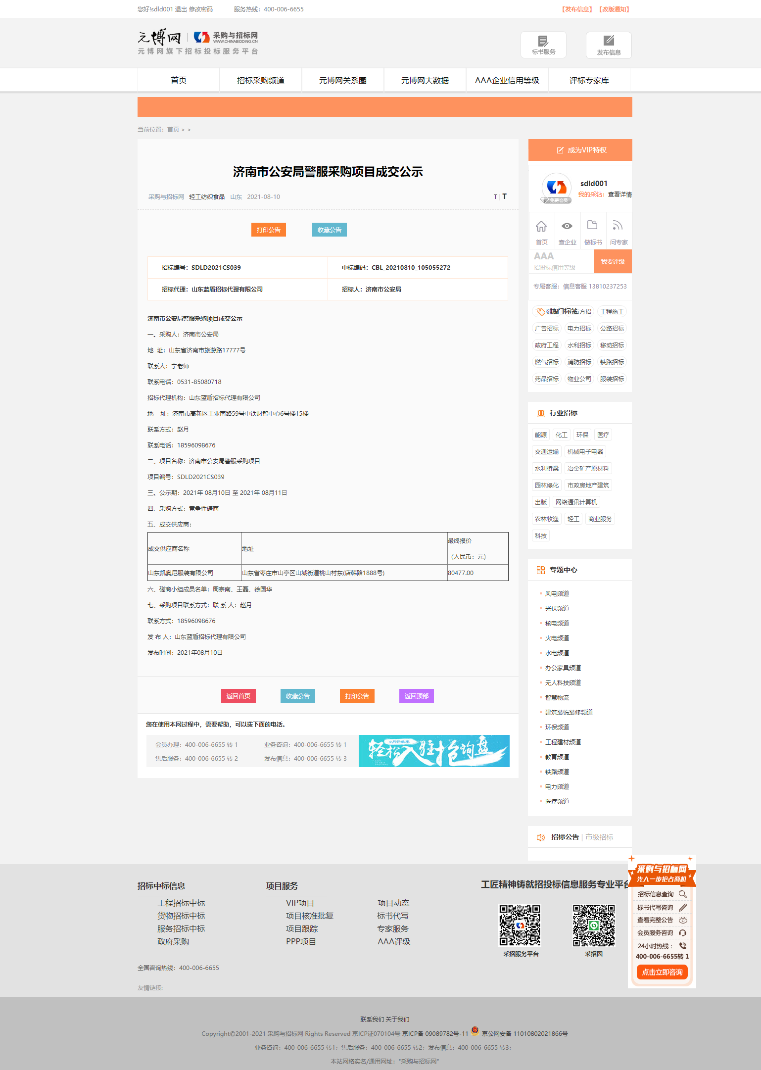 濟(jì)南市公安局警服采購(gòu)項(xiàng)目成交公示