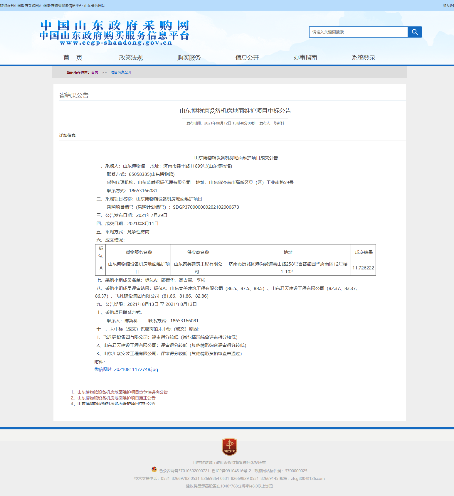 山東博物館設(shè)備機(jī)房地面維護(hù)項(xiàng)目成交公示