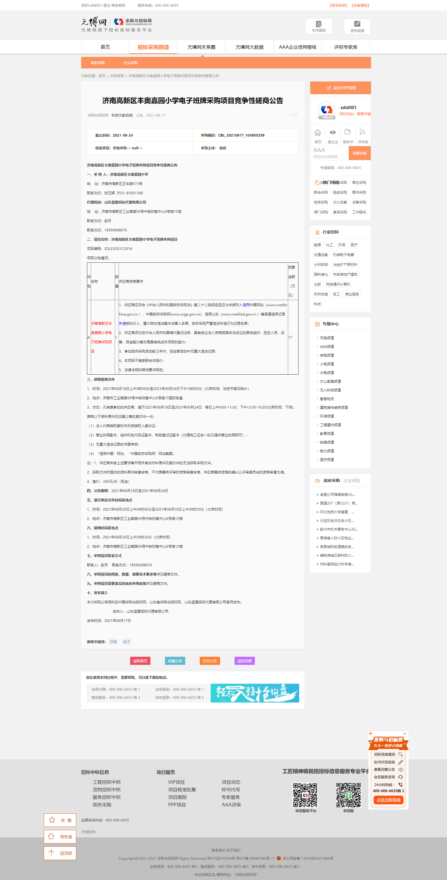 濟南高新區(qū)豐奧嘉園小學(xué)電子班牌采購項目