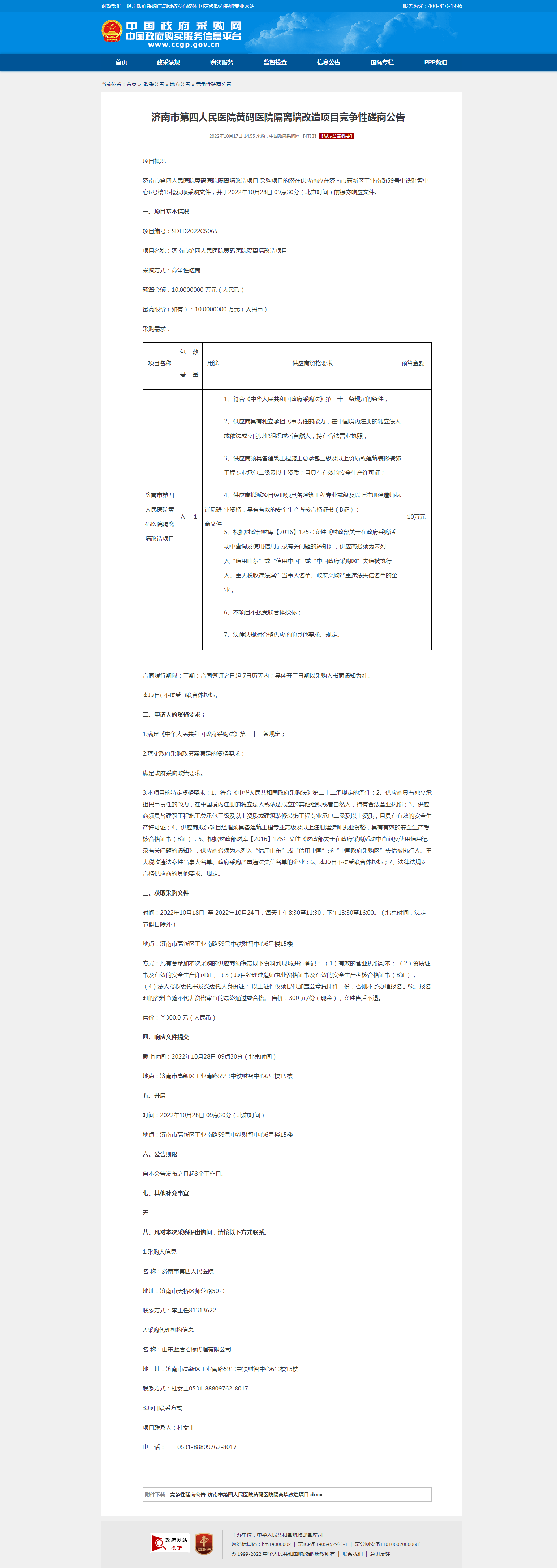 濟(jì)南市第四人民醫(yī)院黃碼醫(yī)院隔離墻改造項(xiàng)目競(jìng)爭(zhēng)性磋商公告