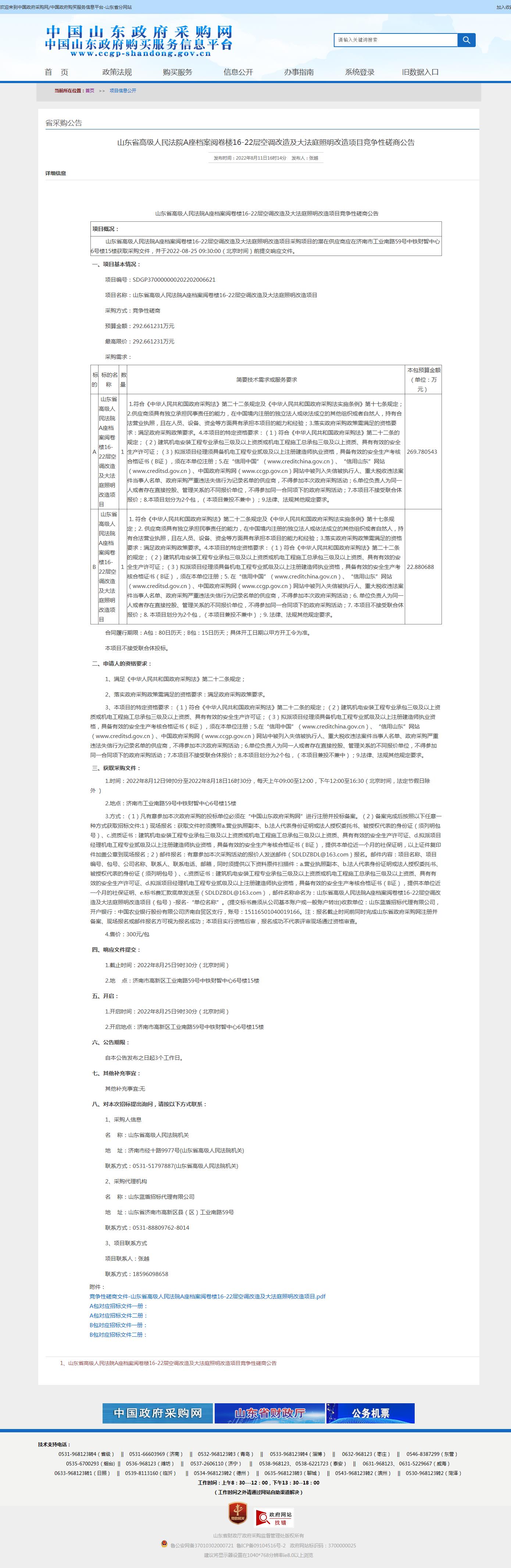 山東省高級人民法院A座檔案閱卷樓16-22層空調(diào)改造及大法庭照明改造項目競爭性磋商公告