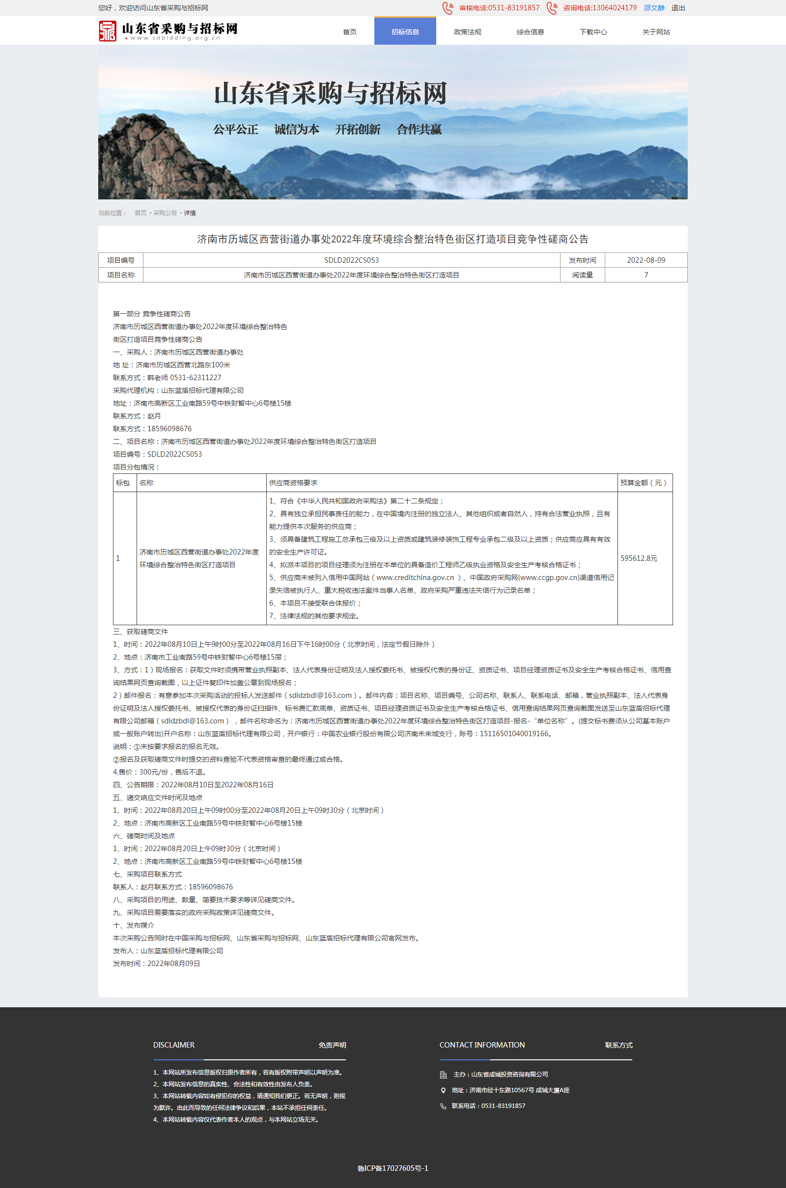 濟南市歷城區(qū)西營街道辦事處2022年度環(huán)境綜合整治特色街區(qū)打造項目競爭性磋商公告