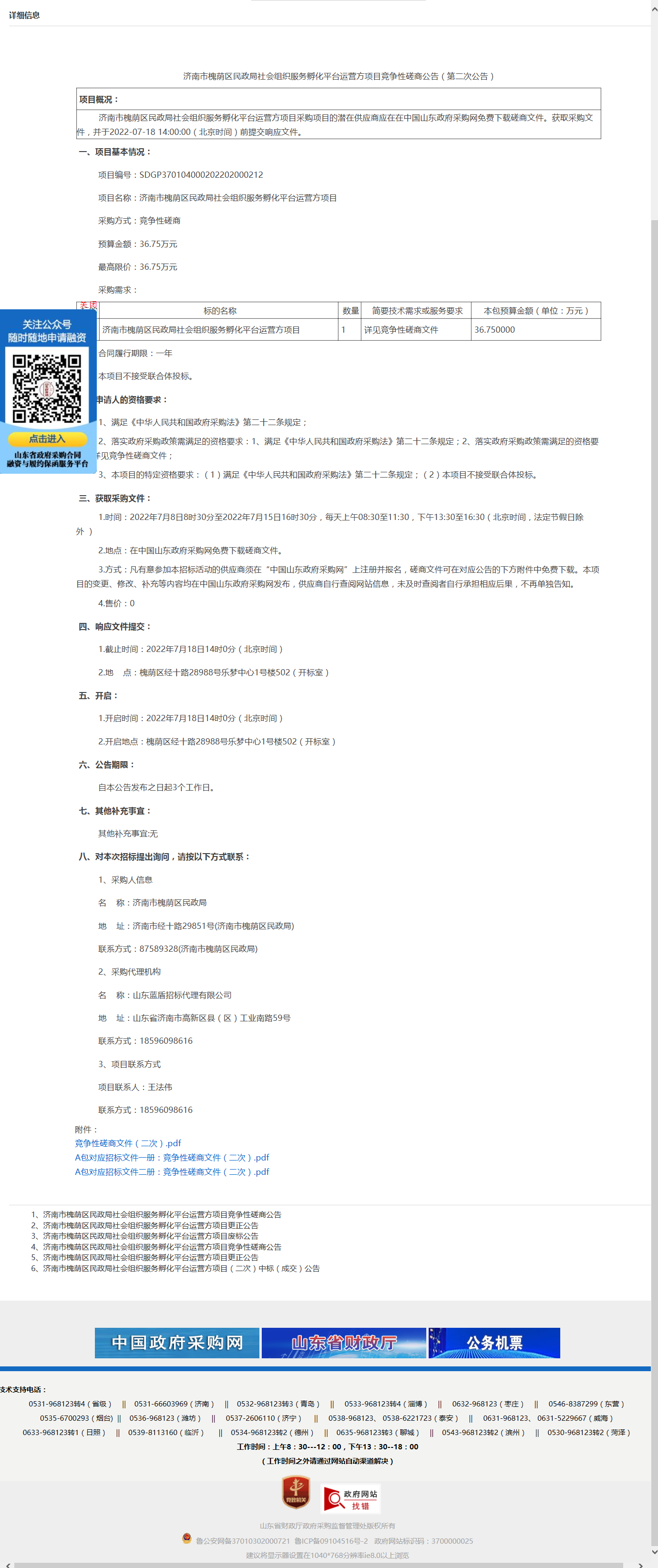 濟(jì)南市槐蔭區(qū)民政局社會(huì)組織服務(wù)孵化平臺(tái)運(yùn)營方項(xiàng)目