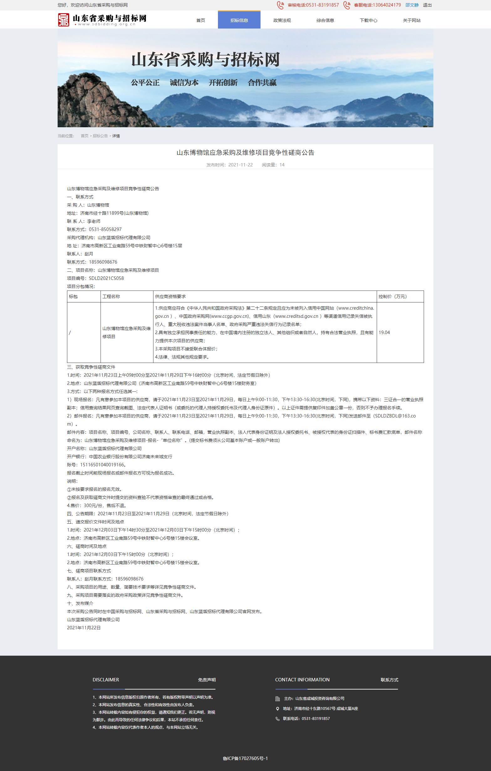 山東博物館應(yīng)急采購(gòu)及維修項(xiàng)目競(jìng)爭(zhēng)性磋商公告